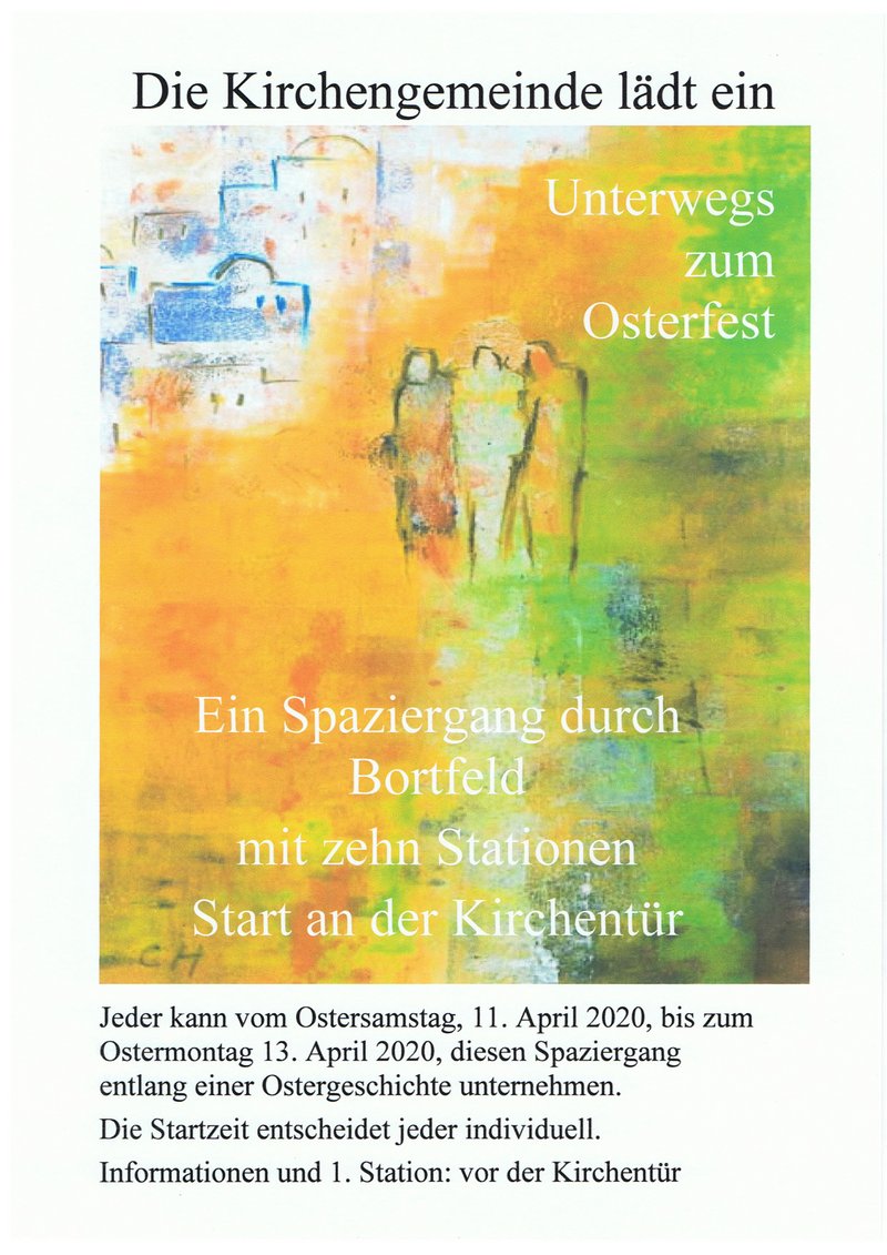 Der Weg (in Familiengruppen und mit Abstand) beginnt an der Kirche. Dort finden Sie die nähere Beschreibung.